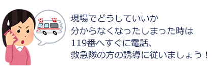 意識が無い→心肺蘇生→119番へ通報→AEDがあれば使用!